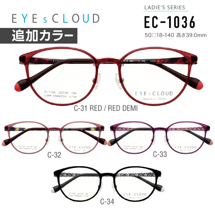 アイクラウド メガネフレーム EYEs CLOUD LADIES' SERIES EC-1036 グッドデザイン賞 レディース ウェリントン 眼鏡 度付き 度なし 伊達メガネ サイズ:50 国内正規品 おしゃれ