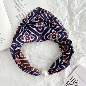 【メール便送料無料】パール付小紋柄スカーフネックレス スカーフネックレス 小紋柄 パール付き ネイビー 紺 ポリエステル 軽量 2WAY 首元アクセント レディース 上品 エレガント フェミニン 華やか 高見え シンプル 大人可愛い トレンド