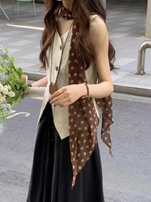 レディース ファッション 小物 オシャレ アイテム ショール マフラー ケープ ストール 季節物 フレンチ レトロ ドットスカーフ ロング スカーフ ネクタイ ひらひら アクセサリー ネックレス