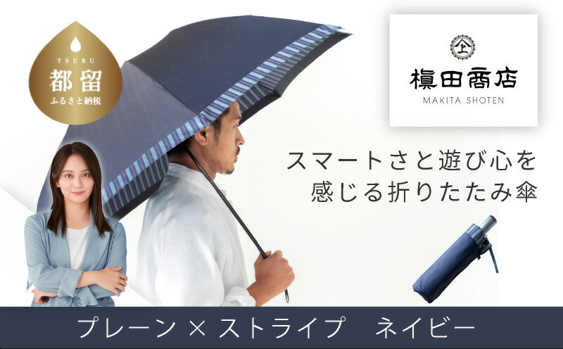 【ふるさと納税】【槙田商店】紳士折たたみ傘 Tie Plain×Stripe NAVY |国産 日本製 ギフト 贈り物 父の日 母の日 敬老の日 記念日 送料無料 おしゃれ