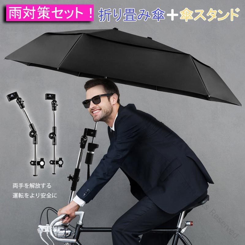 自転車 法改正2024対応 折りたたみ傘 メンズ 大きい おりたたみ傘 台風対応 梅雨対策 耐風 撥水 晴雨兼用 日傘 アンブレラホルダー付き 傘立て 折りたたみ式 任意角度調節 自転車ベビーカーカート用 雪用