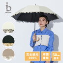 【マラソンP2倍】 日傘 傘 かさ 晴雨兼用 晴雨兼用傘 長傘 スズラン 刺繍 天然素材 紫外線遮蔽率 99%以上 紫外線防止加工 ベージュ ブラック because ビコーズ