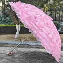 日傘 折り畳み傘 レディース エレガント ピンク 立体フラワー レース ビニール 日焼け防止 シェード UV 保護 プリンセス 傘 雨晴兼 二つ折り畳 ローズ