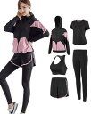 [DawnRain]スポーツウェアレディースヨガウェア5点セットトレーニングウェアランニングウェアフィットネス吸汗速乾