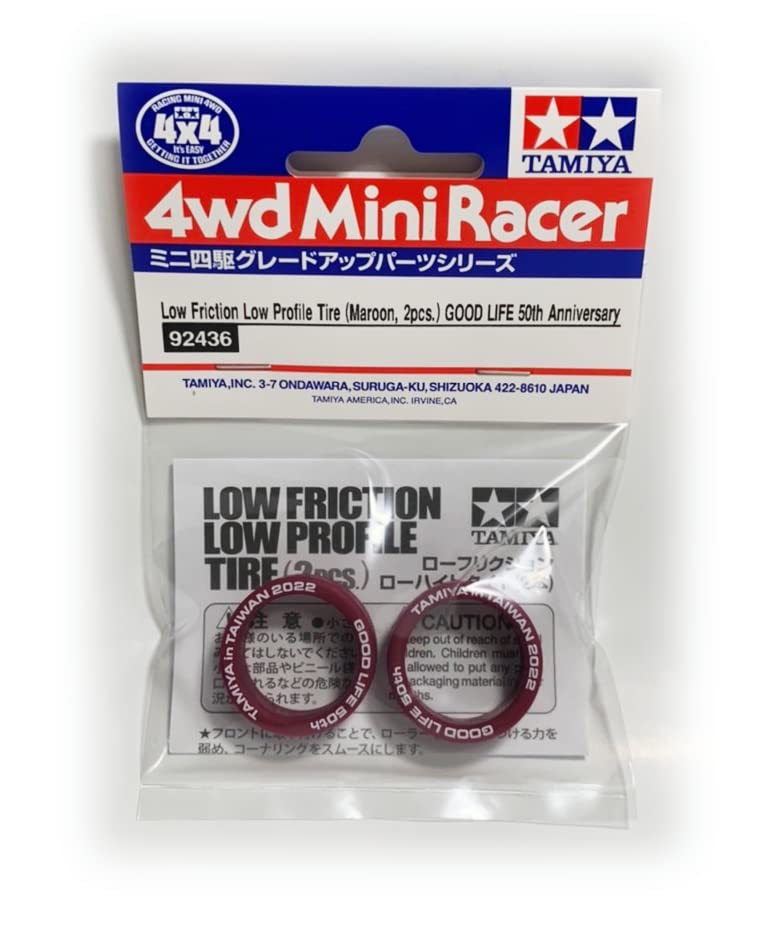 台湾限定 ミニ四駆 TAMIYA in TAIWAN 2022 GOOD LIFE 50th刻印 ローフリクション ローハイトタイヤ(2本 マルーン) 日本未発売 92436