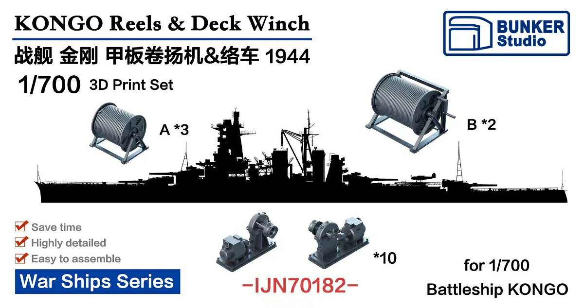 バンカースタジオ 1/700 日本海軍 戦艦金剛 絡車&巻上げ機セット 1944 3Dプリンター製