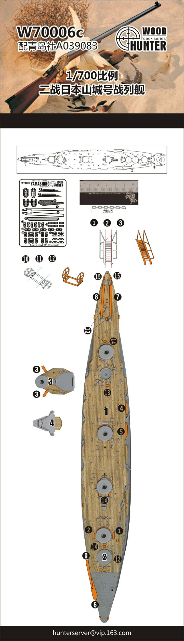 ウッドハンター 1/700 日本海軍 戦艦 山城 1944 木製甲板シート (アオシマ No.122用) プラモデル用パーツ