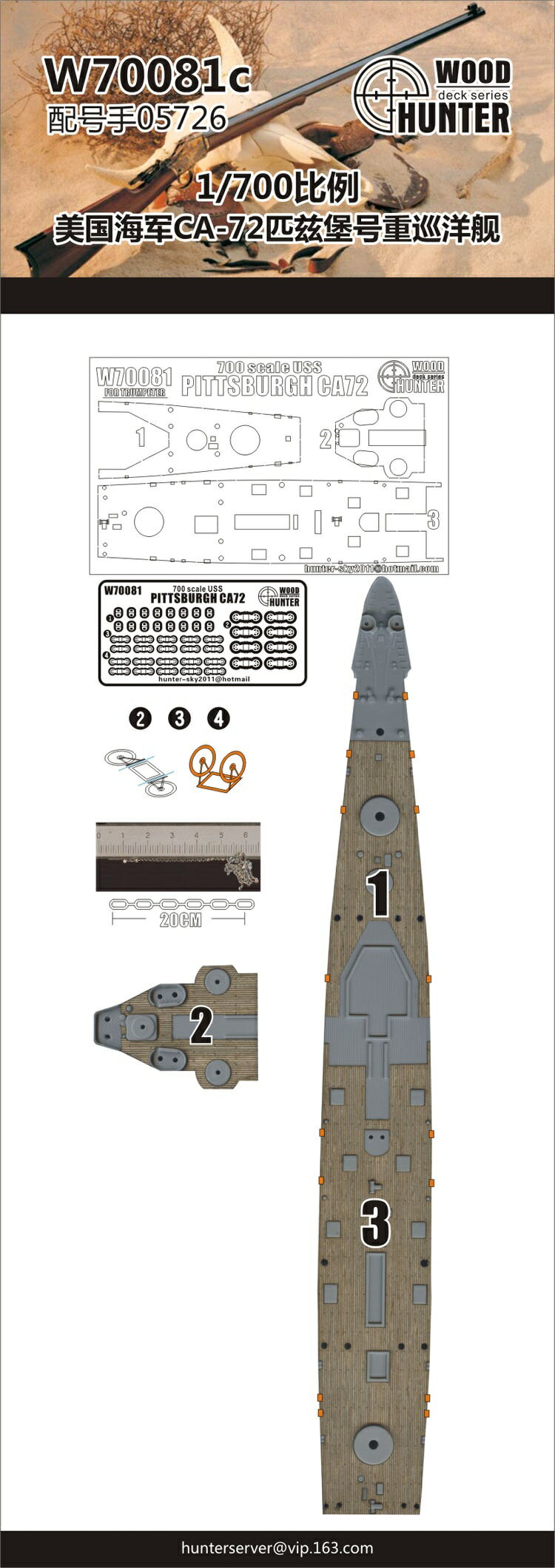 ウッドハンター 1/700 アメリカ海軍 重巡洋艦 ピッツバーグ CA-72 1944 木製甲板シート (トランぺッター/ピットロード 用) プラモデル用パーツ