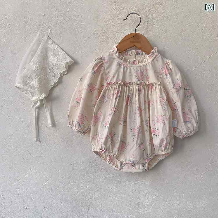 ロンパース 女の子 ベビー服 秋 韓国 子供服 スウィート 花柄 立ち襟 プリンセスデザイン 綿 長袖 カバーオール 乳幼児 お出かけ着 かわいい おしゃれ