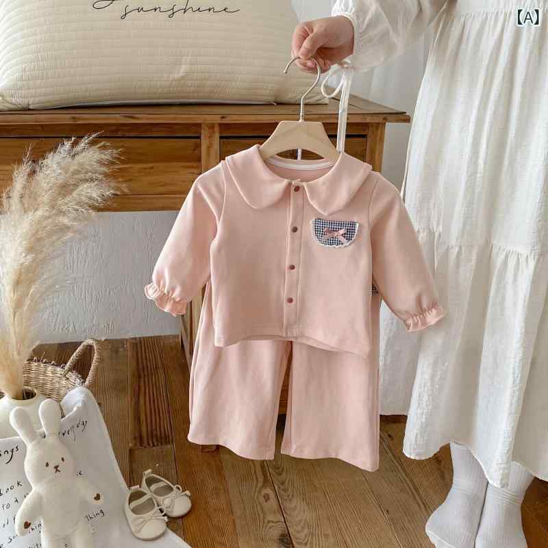 ・カテゴリ: キッズセットアップ・性別: 女の子・スタイル: 韓国・セットアップタイプ: パンツセット・セット点数: 2点セット・対象年齢: 1~3歳(80~100cm)・袖丈: 長袖・パンツ丈: ロング・生地加工: 柔軟加工・厚さ: 普通・柄: 無地・主な素材: 綿95%・基準: Aクラス・留め具: シングルボタン・カラー展開: ピンク、グレー・適応身長: 73cm、80cm、90cm、100cm、110cm