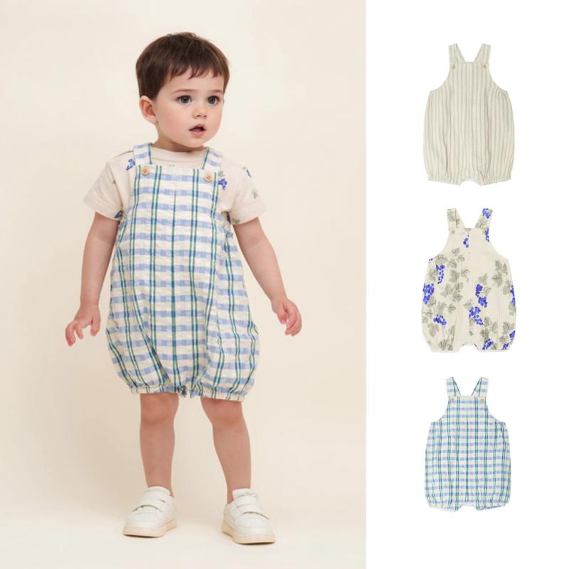 子供用サロペット 北欧風 夏 格子柄 ストライプ柄 ベビー キッズ パンツ 高腰 80cm 90cm 100cm