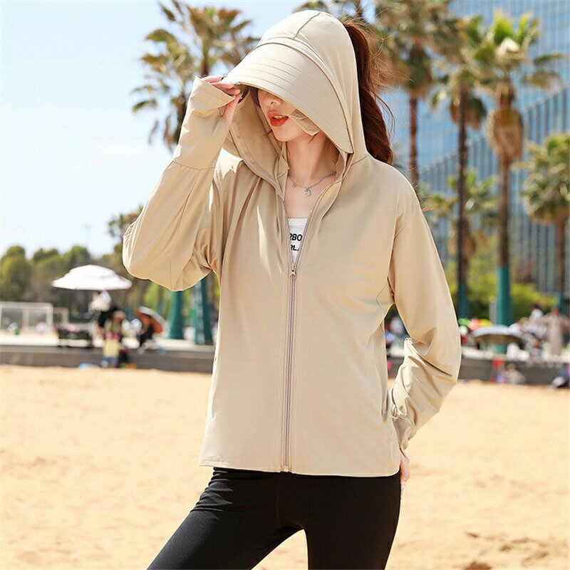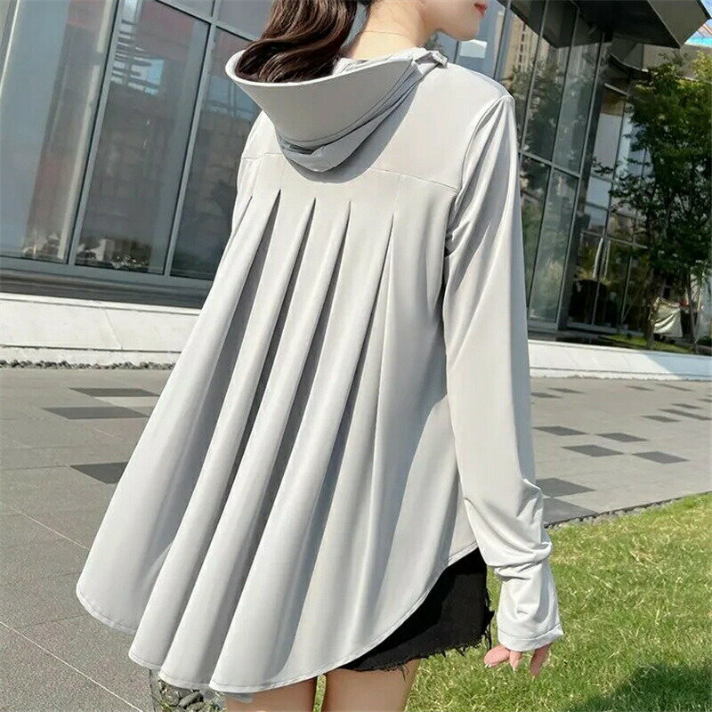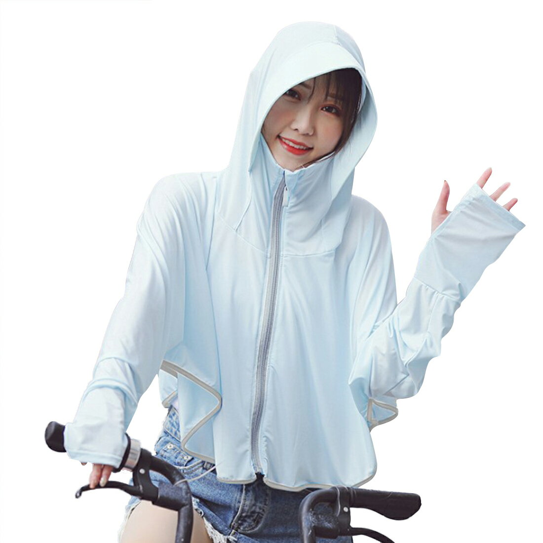 レディース UVカット パーカー -5℃ ポンチョ ラッシュガード おしゃれ 夏 薄手 長袖 接触冷感 速乾 日焼け止め アウター アウトドア フード付き 通気 軽量 紫外線対策 トップス 指穴 自転車 通勤通学 旅行 登山 釣り ビーチ