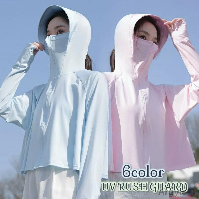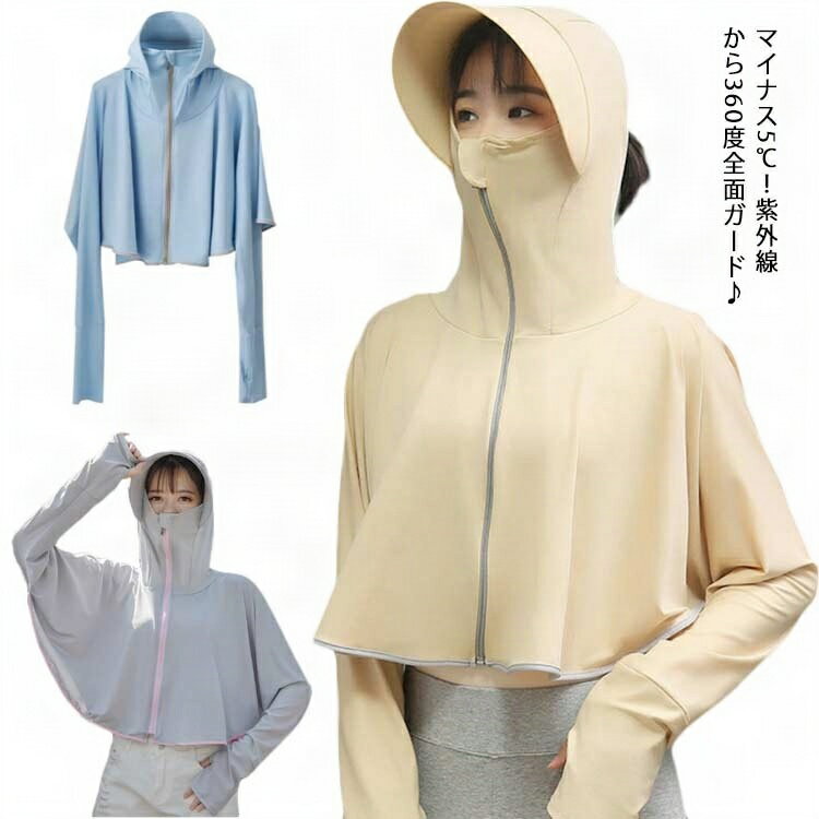 UVカット ボレロ パーカー レディース 接触冷感 フェイスカバー 日除け帽子 ポンチョ UPF50+ ラッシュガード 日焼け止め 紫外線対策 アウトドア
