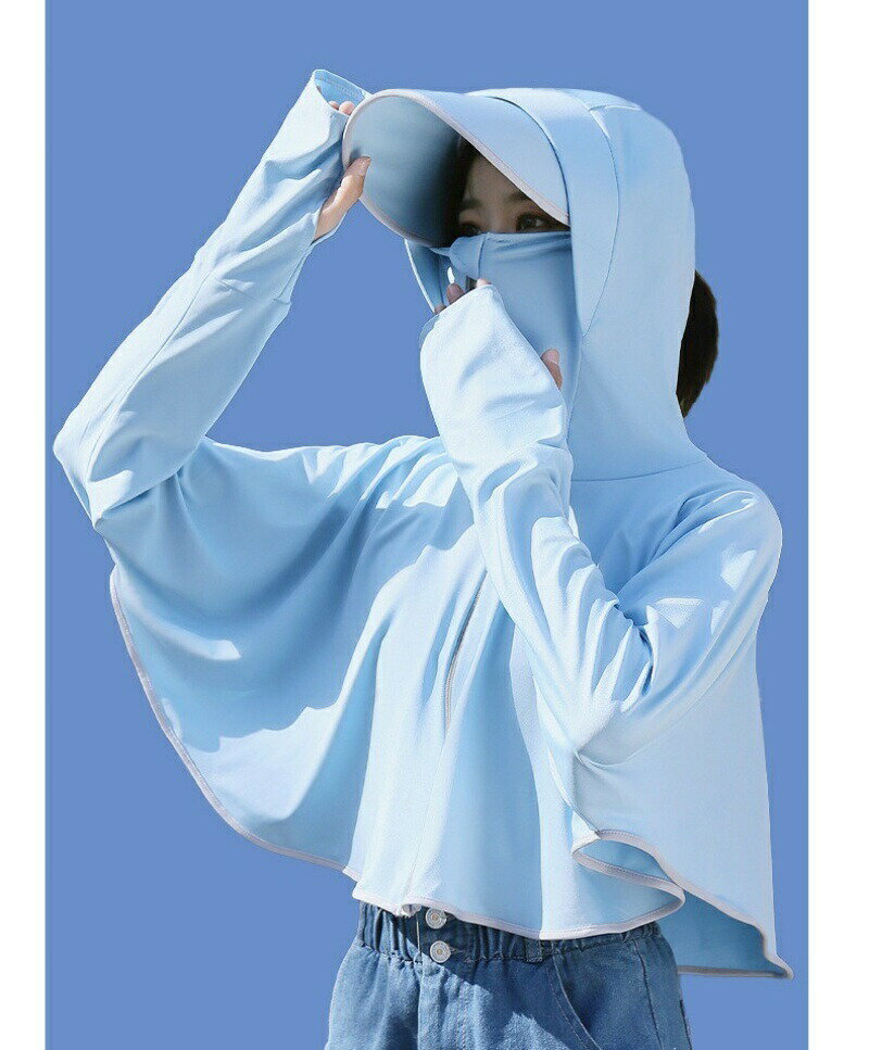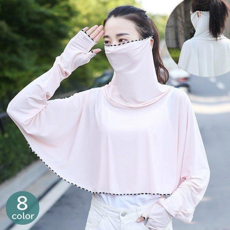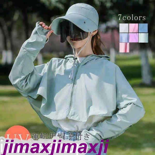 uvカット ポンチョ 涼感 夏用 レディース ジップパーカー 顔 首 手の甲まで 日焼け防止 自転車 アウター 日よけマスク ネックカバー フード