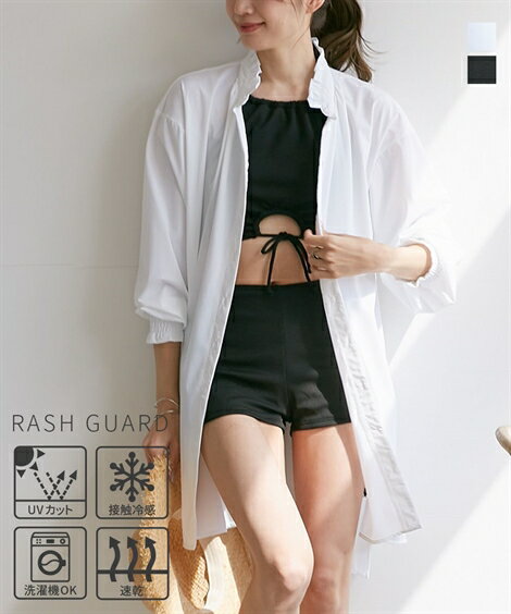 【ラッシュガード】タウンユースできるUVカットロングシャツ(水陸両用)(接触冷感)ラッシュガード 羽織 はおり 大きいサイズ 海 プール レジャー キャンプ 30代 40代 50代 春夏秋 無地 カジュアル