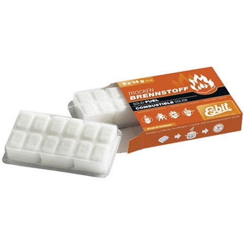 サイズ:高さ17mm×幅80mm×奥行70mm燃焼時間:1tab約15分素材:ヘキサミン特徴:爆発性なし、燃焼時液体化なし、スパークなし、高カロリー7000kcal/kgs、燃え残り灰ほとんどなし、目に見える煙なし、通常使用無毒(極端な使用状況では健康被害がある場合がございます)原産国:ドイツ実験によるとタブレットの理想的な重量は燃焼効率を考えると14gである事がわかりました。軍隊での過酷な使用環境が考慮されて完全防湿ブリスターパックとなっています。500mlの水が約7分で沸き必要に応じて容易に分割できるようにタブレットに溝がつけてあります。Esbitはドイツ軍、オーストリア軍、フランス軍、NATO軍のサバイバル用標準装備ブランドですので通常のキャンプから緊急時まで幅広く安心して使用できます。