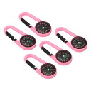 PATIKIL コンパス 5個セットのバックルコンパスキーチェーン ハイキング アウトドアキャンプ用の防水サバイバルポケットコンパス ピンク