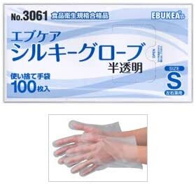 【送料無料】エブケアNo.3061 使い捨て シルキーグローブ 半透明 Sサイズ 箱入り 100枚 ×3個セット