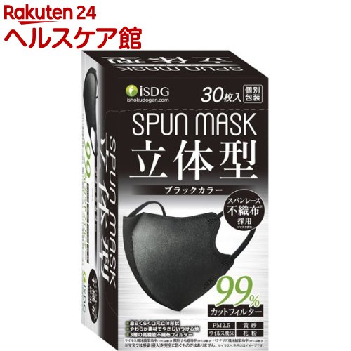 立体型スパンレース不織布カラーマスク 個包装 ブラック(30枚入)【医食同源ドットコム】