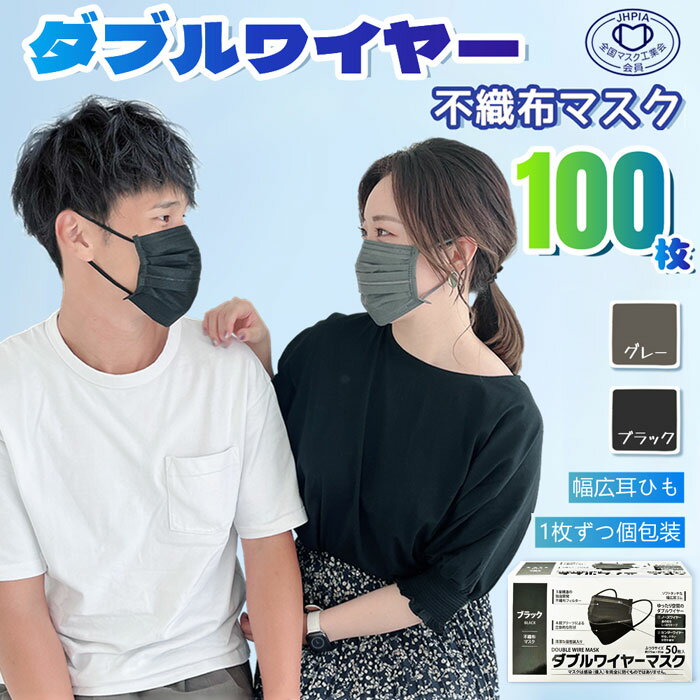 マスク 不織布 カラー 100枚 ダブルワイヤー 立体 1枚づつ 個包装 マスク w ワイヤー 大きめ 夏用 苦しくない 黒 ブラック 3層構造 男女兼用 グレー おしゃれ uvカット メンズ オシャレ 使い捨て 耳が痛くならない やわらか 平ゴム ふんわり やさしい 全国マスク工業会