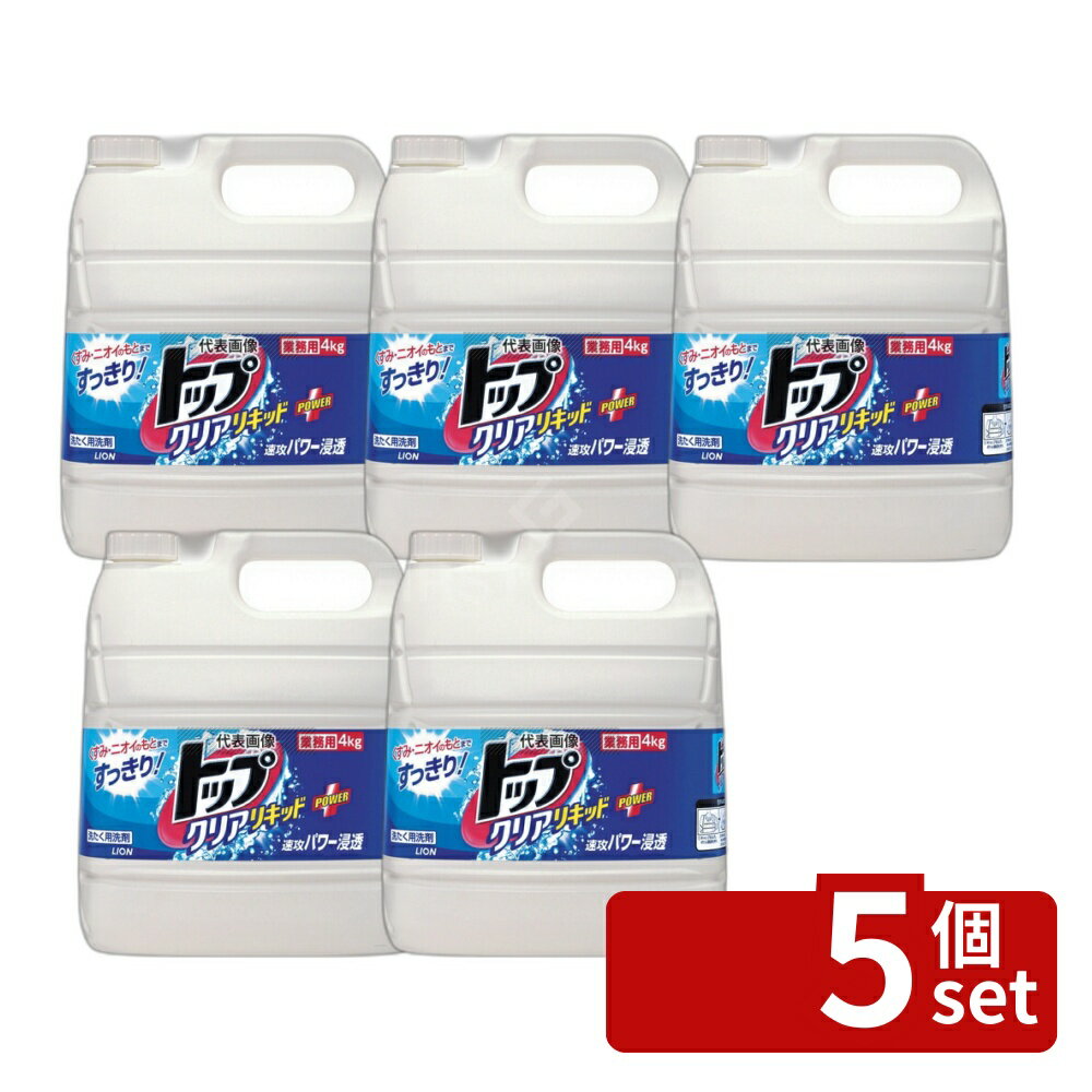 【5個セット】ライオン 衣料用洗剤 業務用トップクリアリキッド 4kg 4kg 200×120×H265mm 洗剤 No.0605851