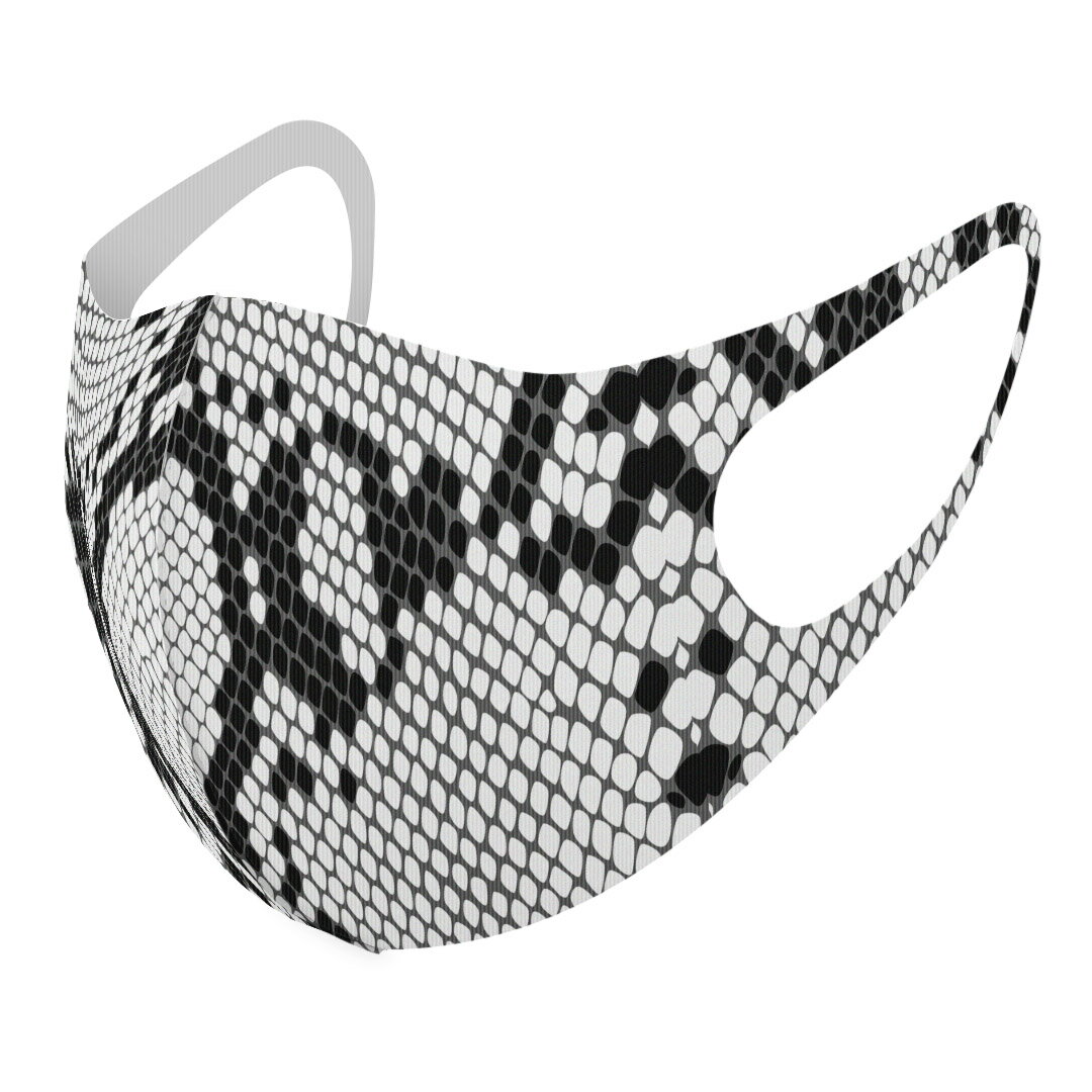 2枚セット デザインマスク 洗えるマスク おしゃれ 人気 ファッション ポリエステル 布マスク 洗って 繰り返し 大人用 子供用 普通 メンズ レディース 男性 女性 こども ジュニア キッズ 幼児 未就学児 004476 ヘビ柄 模様 白 黒