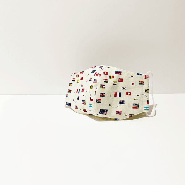 マスク 立体型Mレギュラーサイズ スタンダードタイプ女性にお薦め袷(二重)仕立【三角 ▽ ステッチ入り】国旗プリント434 布製 日本製