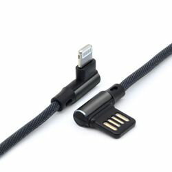両コネクタがアルミニウムヘッド&L型iOSケーブル※こちらは【取り寄せ商品】です。必ず商品名等に「取り寄せ商品」と表記の商品についてをご確認ください。両コネクタがアルミニウムヘッド&L型ケーブル。iOSに対応、ケーブル長は30cm。便利な両端L字型ヘッドなので、スマホで充電しながらのゲームや動画視聴に最適。端子回りの省スペース化にも有効です。コネクタボディはスタイリッシュで高級感のあるアルミニウムを採用。ケーブル部は柔らかくて丈夫なコットン素材のケーブル。急速充電対応の最大電流2.4Aで充電&通信に対応。ケーブル長:約30cm カラー:ブラック ※MFI非認証品