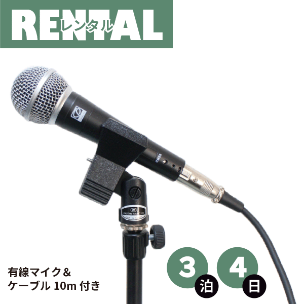 【 レンタル 】 3泊4日 有線マイク&10mケーブル ※マイクスタンドは付いておりません。