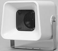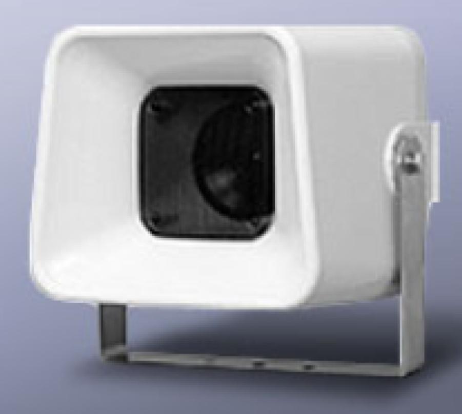 ソフトホーンスピーカー (12cm、30W/20W/10W、L級) 防滴レベルは、JIS保護等4(防まつ形)をクリア。 直接風雨にさらされても高音質を維持します。 遠狭近広指向性ホーンの採用により狙ったエリアを的確に カバー、サービスエリア内の音圧の均一化と近隣への音放射軽減が可能です。 (SB-H215/H230) アイボリー系 モールド成型 日本消防検定協会評価品