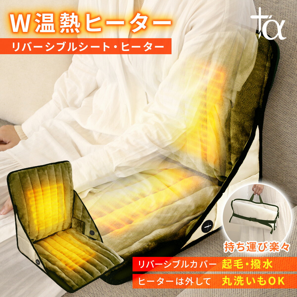 ヒータークッション +α プラスアルファ あったか クッション ヒーター リバーシブル W おしゃれ 快適 ぽかぽか キャンプ パネルヒーター デスクヒーター ホットカーペット ホットマット クッション 大きい 椅子 プレゼント PA-005