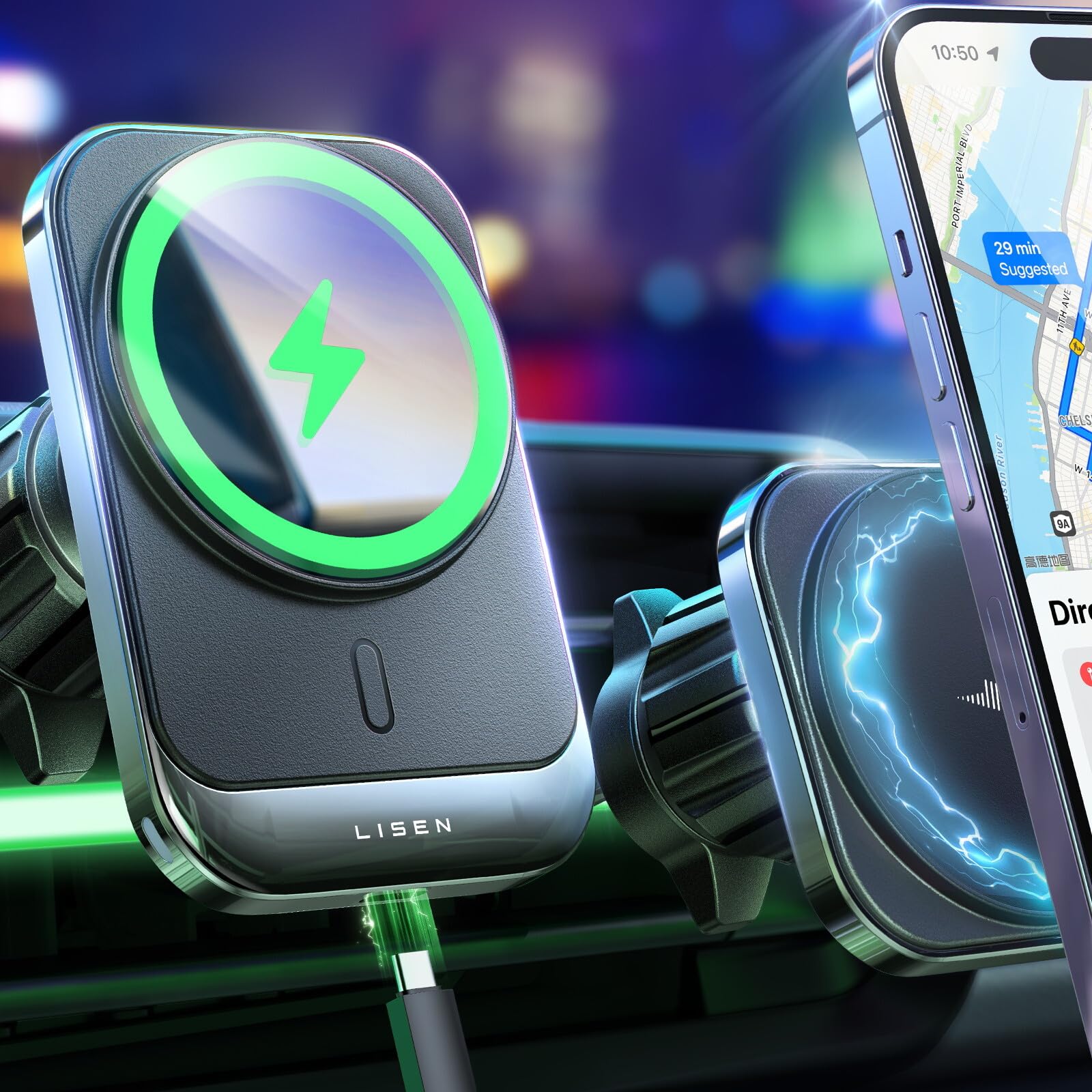 【送料無料】LISEN magsafe 車載ホルダー スマホスタンド 0.1秒吸着 マグネット 車用スマホホルダー スマホホルダー 車 15 Wワイヤレス充電 安定性アップ 車載スマホホルダー エアコン吹き出し口 超強磁力iphone 15 pro max エアコン ホルダー 急速充電 iPhone 15 14 13 12 P