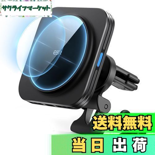 【送料無料】ESR magsafe 車載スマホホルダー ワイヤレス充電器 急速充電 15W magsafe充電器 磁気吸着 自動位置調節 車 スマホスタンド 車載ホルダー iPhone16/15/14/13/12シリーズ対応 スマホホルダー マグネット ブラック