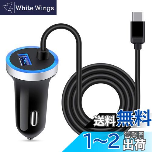 商品情報商品の説明主な仕様 【急速充電〜様々なデバイスを】(USBポート及びType-c)2ポートの組み合わせusb車充電器により、2台のスマートフォンを同時にフルスピード充電することができます。また、iSmart機能を搭載し、機器に合わせた最適な急速充電が可能です(各ポート最大2.4A出力、合計最大出力3.4A)。br【安全・安心の車載充電器 】USB車充電器の外形寸法:68×30×30mm、重さ:約40g。超軽量化・コンパクト化を実現し、シガーソケットに装着しても運転の邪魔にならないミニサイズの車の充電器です。運転中の電圧変動も自動で調節でき、いつまでも安定した電圧を供給しています。更に、充電保護システムより、過充電、過放電、過熱を防止し、お使いの機器をしっかり守ります。br【高級感に溢れる車載充電器 】高級車でのご使用にも違和感を感じさせないシンプルなデザインです。通電時LEDライトが青く光り、夜の暗い車内でも一目で確認できます。USBポートカーチャージャーの先端は長い端子を採用、また両側に滑り止めメタルドーム付き、しっかりとシガーライターに固定されてグラグラしたり、脱落したりしません。br【Type-Cケーブル一体型】 このシガーソケット充電器には、高品質のタイプCケーブルが1本付属しております。1メートルの長さで、運転席だけでなく、後部席も楽に使用できます。ケーブル内部に高純度銅製心線を採用し、充電速度がより速くなり、更に、Type Cのプラグ内に56KΩの抵抗を実装するため、安全性を確保する同時に、充電時間も短縮できます。br【12V-24V車対応】シガーソケットコンセントは12V/24V入力に対応し、一般的な乗用車はもちろん、トラックなどの大型車や外車でもお使いいただけます。