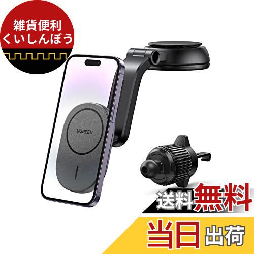 UGREEN ワイヤレス車載充電器 magsafe 15W/7.5W 車載ホルダー マグネット スマホホルダー 吸盤式&吹き出し口兼用 iPhone15/ 14/13/12シリーズ対応 ブラック