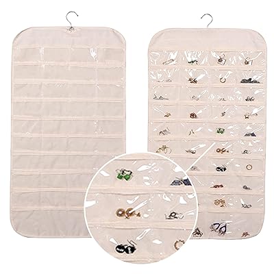 アクセサリー 収納 ウォールポケット 【80ポケットの収納力】 ネックレス リング ピアス イヤリング 小物 省スペース 吊り下げ式 (ベージュ)