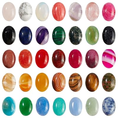 SUPERFINDINGS 35色 楕円形 18x13mm ジェムストーンカボション ナチュラルシンセティックストーンビーズ 厚さ5mm オーバルフラットバッククォーツクリスタルカボション イヤリング ネックレス ブレスレット ジュエリー作り