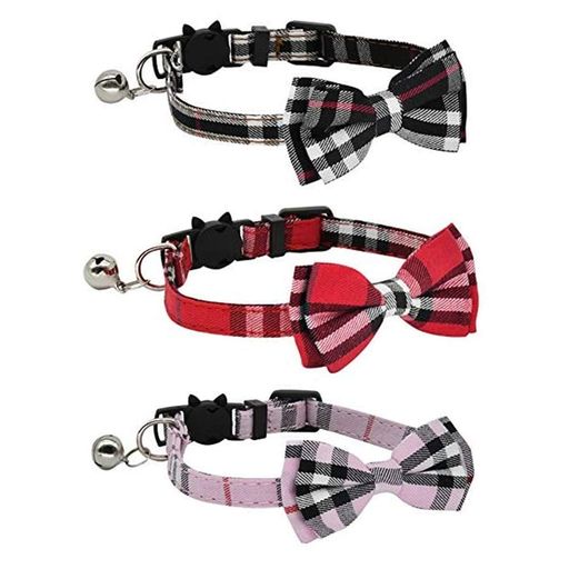 【素材&色】:柔らかい布を採用して作りました猫首輪です。猫ちゃんには優しくて、耐久性もいいです。色は赤、黒、ピンク3色です。 【サイズ&3点セット】:首輪のサイズは18~28CM間に調整可能ですが(手で測ったサイズなので多少サイズ差がありますからご了承をお願いします)、猫ちゃんに適切な長さが調整できます。3本入りなので、気持ちによって色を変えて付けてもよくないの?笑 多匹の猫ちゃんを飼っている家庭には実用性高いです。笑笑 【可愛いデザイン&蝶結び取り外し可能】:可愛いリボンと鈴付きのデザインですし、チェック柄も上品に見えます。プレゼントとしてもおすすめです。この蝶結びは取り外し可能なので、蝶結びを取り外して、シンプルな首輪になります。 【優れた安全性】:猫ちゃんへの安全性を考えると、外れやすい首輪を選ぶことも必要になります。力が加わると首輪が外れるセーフティバックル式なデザインなので、外出や脱走する時に、万が一、枝木や針金にひっかかっても外れやすいです。 【いい音がする鈴付き♪】:かわいい鈴が付けるチリンチリン音によって、猫ちゃんの居場所がすぐわかります。