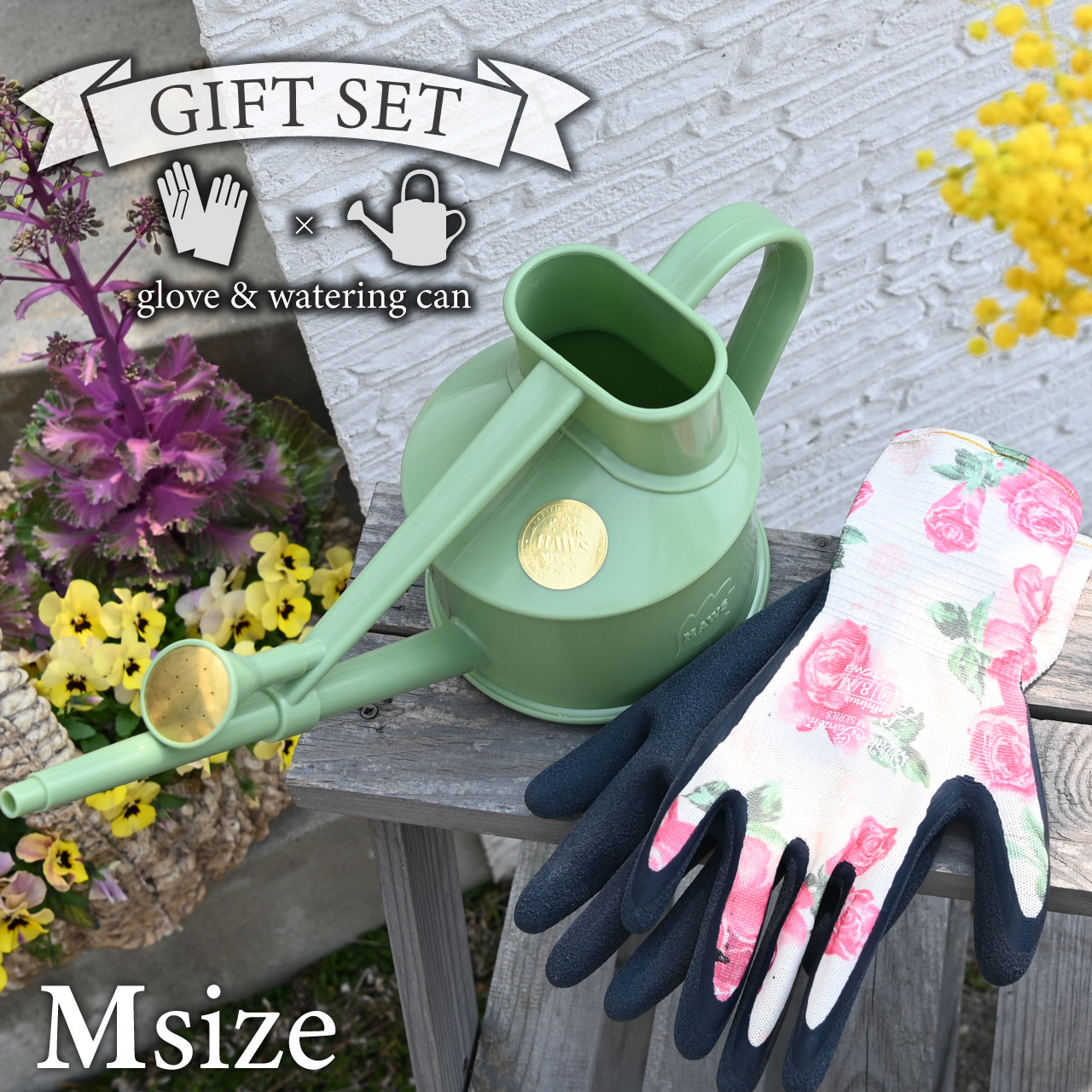 【ギフトとしてもおすすめ】 バレンタイン ホワイトデー 母の日 父の日 敬老の日 クリスマス お祝い 記念日 お礼 退職祝い 誕生日プレゼント 贈り物手にぴったりフィットして使いやすく可愛いガーデングローブと、 さりげなく置いておくだけでオシャレな英国HAWSの小型じょうろのセットです。 手袋は指先と手のひらが柔らかい天然ゴムでできており、手の動きにぴったりフィットしてくれます。 滑り止め加工も施されているので、園芸用具や鉢などもしっかり握ることができます。 手の甲はポリエステル素材で通気性が良く、長時間の作業も快適に行えます。 じょうろは置いておいてもインテリアになるスタイリッシュなデザイン。 ハス口が付いているのでやさしいシャワーもできます。 手袋はローズ、アネモネ、オリーブの全3種。 ジョウロはグリーン、イエロー、ダックエッグブルー、セイジ、レッド、ブルーの全6色。 全部で18種類の組み合わせからお選びいただけます。 センスが光るオシャレなセットはプレゼントにおすすめです。 ガーデングローブ 全3種 ガーデングローブの詳細はこちら 英国 HAWS ハンディインドアカン 0.7L 全6色 インドアカンの詳細はこちら 仕様 【ガーデングローブ】 全長:S/約 長さ23cm×袖口幅7cm M/約 長さ24cm×袖口幅7cm 中指の長さ:S/約 7cm M/約 7.5cm 手のひらまわり:S/約 16cm M/約 16.5cm 材質:天然ゴム(手のひら)、ポリエステル(手の甲) 生産国:中国 【ハンディ インドアカン】 寸法:全長30×直径11.5×全高12.5cm、ハス口 3×3cm 容量:0.7L 材質:プラスチック 重量:146g 生産国:イングランド 【ギフトとしてもおすすめ】 バレンタイン ホワイトデー 母の日 父の日 敬老の日 クリスマス お祝い 記念日 お礼 退職祝い 誕生日プレゼント 贈り物