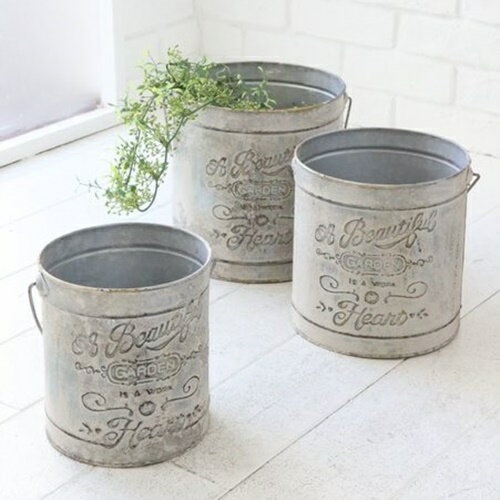 ハーバル・バケツ3点セット OE-30 ■■ COVENT GARDEN バケツ スチール プランター ガーデニング オブジェ 花瓶 花器 ポット 置物 グリーン リビング おしゃれ インテリア 北欧 コベント ガーデン アンティーク調 (140)
