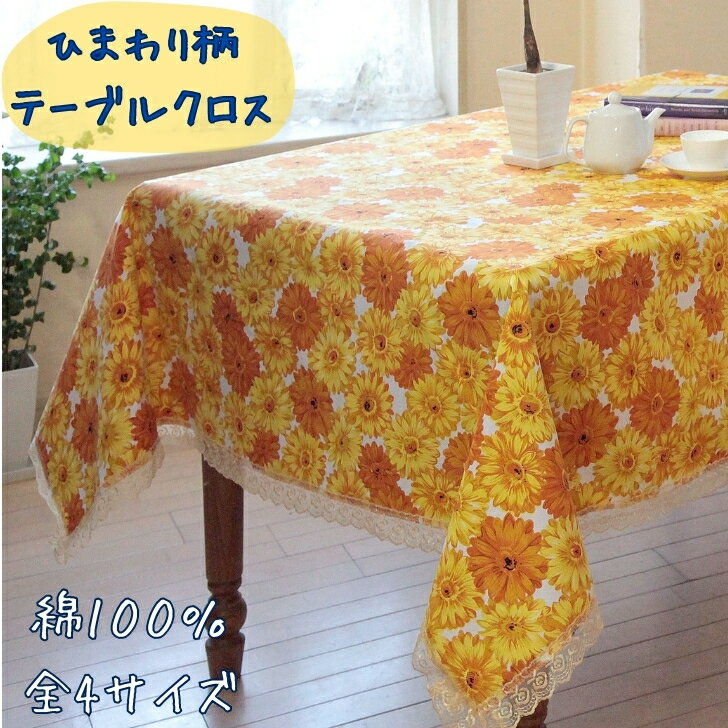 テーブルクロス ひまわり柄 夏 綿100% 洗える テーブルセッティング ファブリック 布 【送料無料】 正方形 長方形 円型