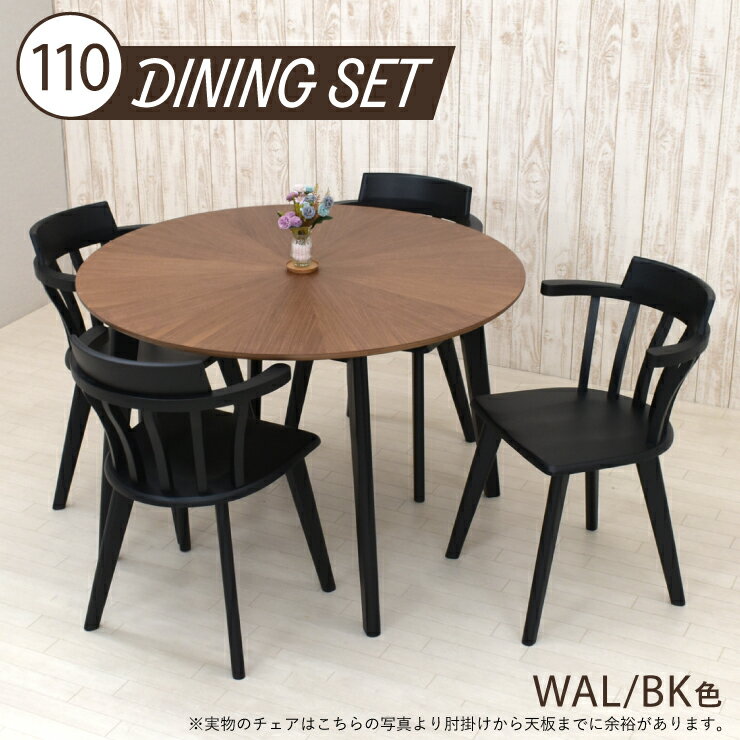 ダイニング丸テーブル 5点セット 幅110cm 高さ72cm 4人掛け eep110-5-esta340wb-cut ウォールナット色 ブラック色 天然木 木目 柾目 北欧風 木製 丸型 円形 肘付きイス アームチェア 椅子 ラウンドテーブル 組立品 16s-3k yk