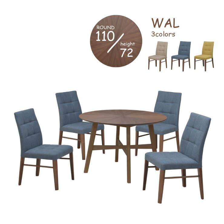 テーブルセット ダイニング リビング 4人掛 幅110cm 高さ72cm sbbt110cut-5-defa341wn 北欧 光線張り ウォールナット色 木製 机 丸型 円形テーブル 混色生地 シンプル モダン 北欧風 木製 固定イス ファミリー スタンダード 脚カット 28s-3k so mz