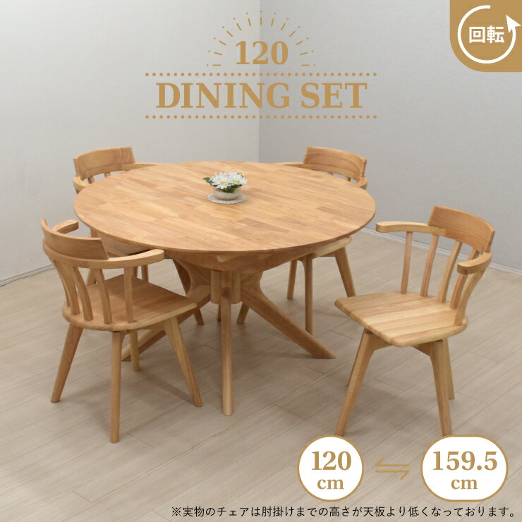 伸長式ダイニングテーブル 5点セット 幅120cm 幅159.5cm 4人掛け rte120-5-selk340cn-cut クリアナチュラル色 木製 クロス脚 円形 丸テーブル 円卓 肘付き回転イス アームチェア 椅子 英国風 リビング お客様組立品 30s-3k yk