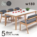 【送料込】 ダイニングテーブルセット 6点 6人用 石目調 ダイニングセット テーブル180cm チェア4脚 ベンチ1脚 モダン シンプル ナチュラル 北欧テイスト 新生活 送料無料 大型テーブル インテリア gkw