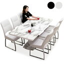 大理石風 ダイニングテーブルセット 白 6人掛け 幅180cm ハイバックチェア ダイニング リビング 大理石 柄 テーブル ホワイト グレー ブラック マーブル調 石目調 光沢 艶 ガラス ダイニングテーブル 7点セット おしゃれ 北欧 モダン 高級感 韓国 インテリア