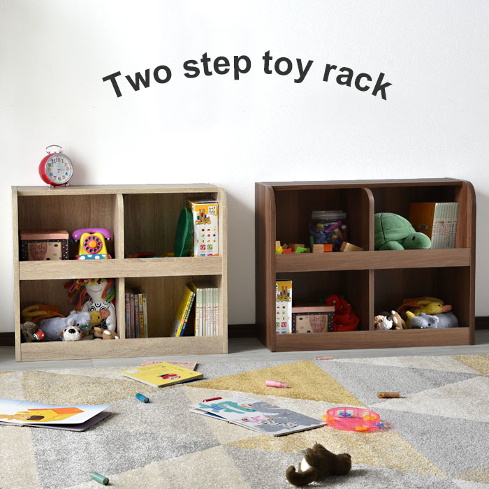 小さい手でもお片付けしやすいおもちゃラック 2段 幅76cm おもちゃラック 収納 お片付け 大容量 おもちゃ箱 絵本棚 絵本ラック(代引不可)【送料無料】