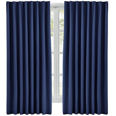 カーテン 1級遮光 2枚組 断熱 防寒 防音 省エネ 厚手 無地 おしゃれ 洗える 寝室 リビング用 (ネイビー, 幅100cm×丈200cm)
