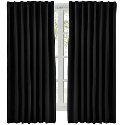 カーテン 1級遮光 2枚組 断熱 防寒 防音 省エネ 厚手 無地 おしゃれ 洗える 寝室 リビング用 (ブラック, 幅100cm×丈200cm)