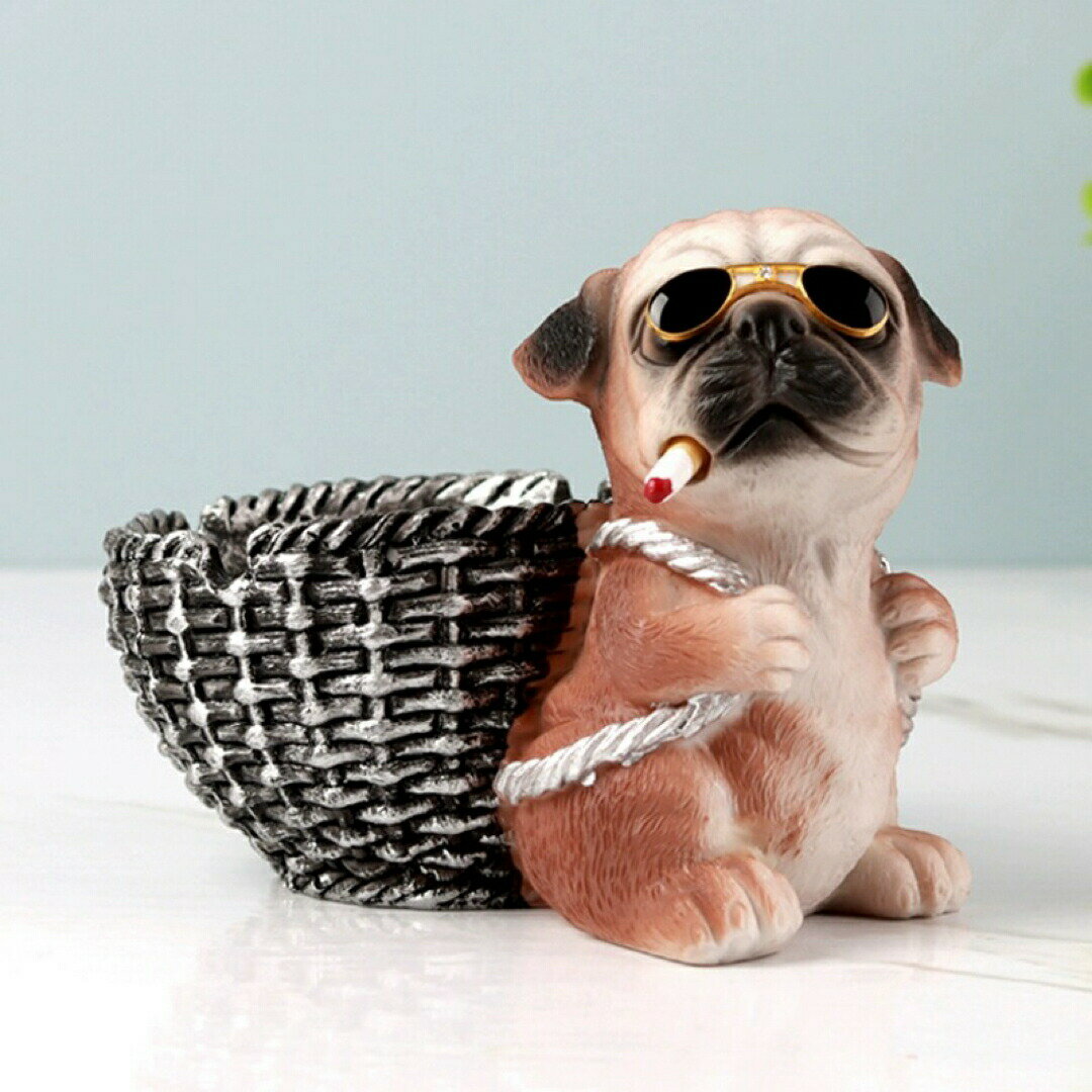 A033322パグ 置物 小物入れドッグ 犬 収納ボックス 卓上収納 雑貨収納 かご 灰皿
